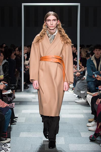 The designers behind popular Japanese label DressedUndressed tend to work and rework classics, finding new ways of imbuing them with a fresh point of view. For fall/winter 2017, they sought to thwart the traditional proportions of tailored garments, much in line with the trend popular more broadly around the globe. This included heavy wool overcoats that were cut square from the shoulders, slim-leg wool suits, and double-layered shirts that splayed open from the neck.
