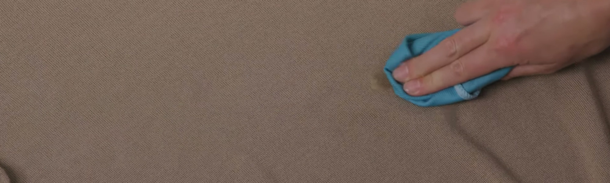 1. Dab gently around the edge of the stain with a lint-free cloth soaked in a dilute solution of Woolmark-approved detergent in tepid water. Blot gently with an absorbent cloth or towel.